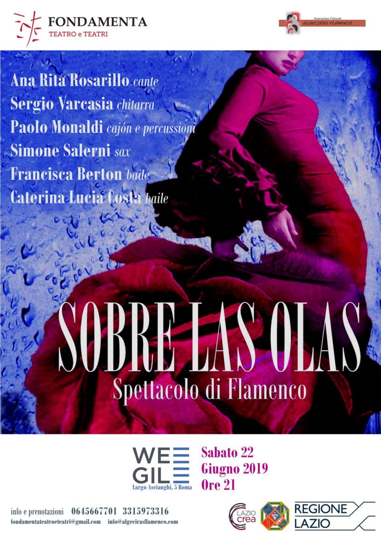 Lo spettacolo, degli artisti di Algeciras Flamenco trae ispirazione da una lirica di Pablo Neruda: Oda al vals sobre las olas. L’atmosfera all’interno della quale si muove lo spettacolo è quella de los cantes de ida y vuelta, canti di andata e ritorno. Un insieme di palos flamencos che hanno la loro origine nella musica popolare ispano-americana e che i musicisti andalusi resero interpretabili in flamenco. Il repertorio musicale e coreografico di Sobre las olas si articola su alcuni di questi palos: milonga, rumba, vidalita, colombiana e guajira conducendo lo spettatore in uno spazio immaginario e colorato, attraverso cuadros flamencos, chitarra, cante, baile.
